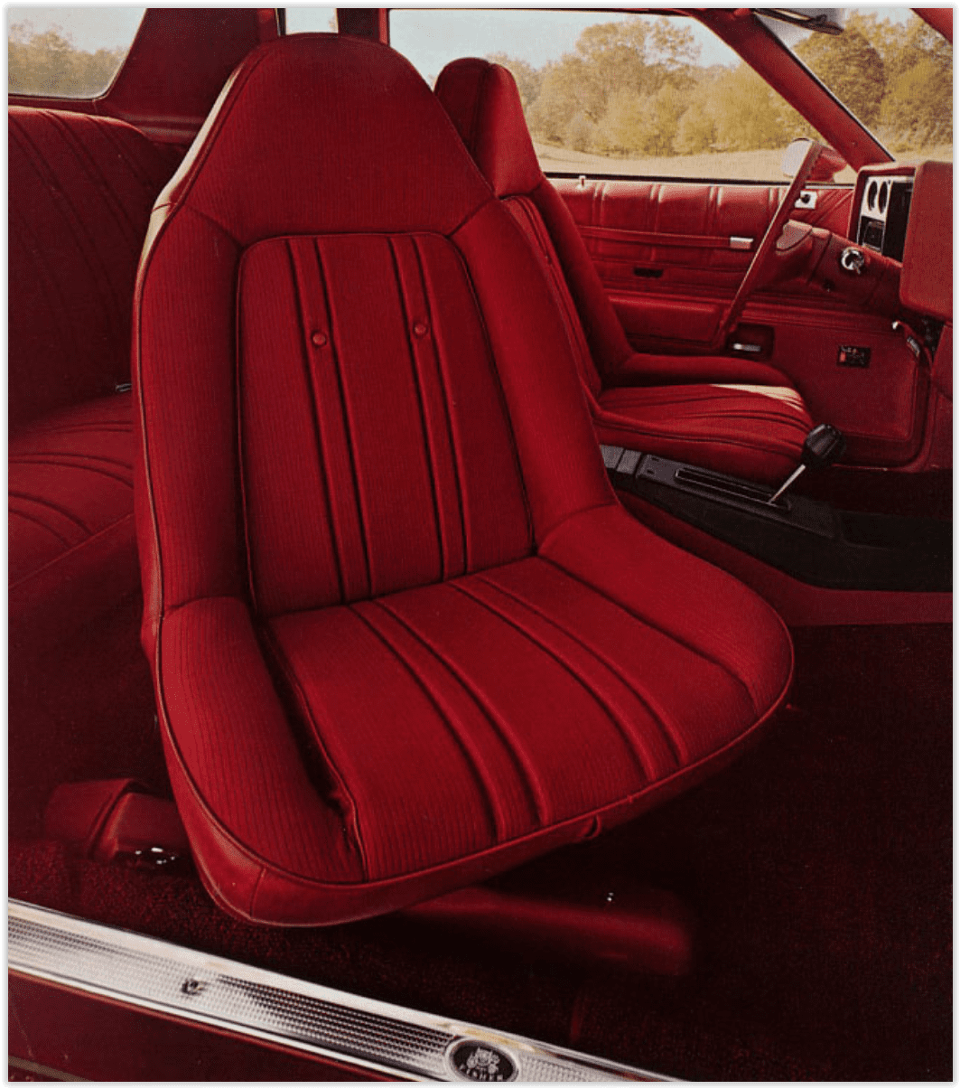 1973 Chevrolet Monte Carlo strato-bucket seats // Image credit: Chevrolet (1973 marketing materials for Monte Carlo)