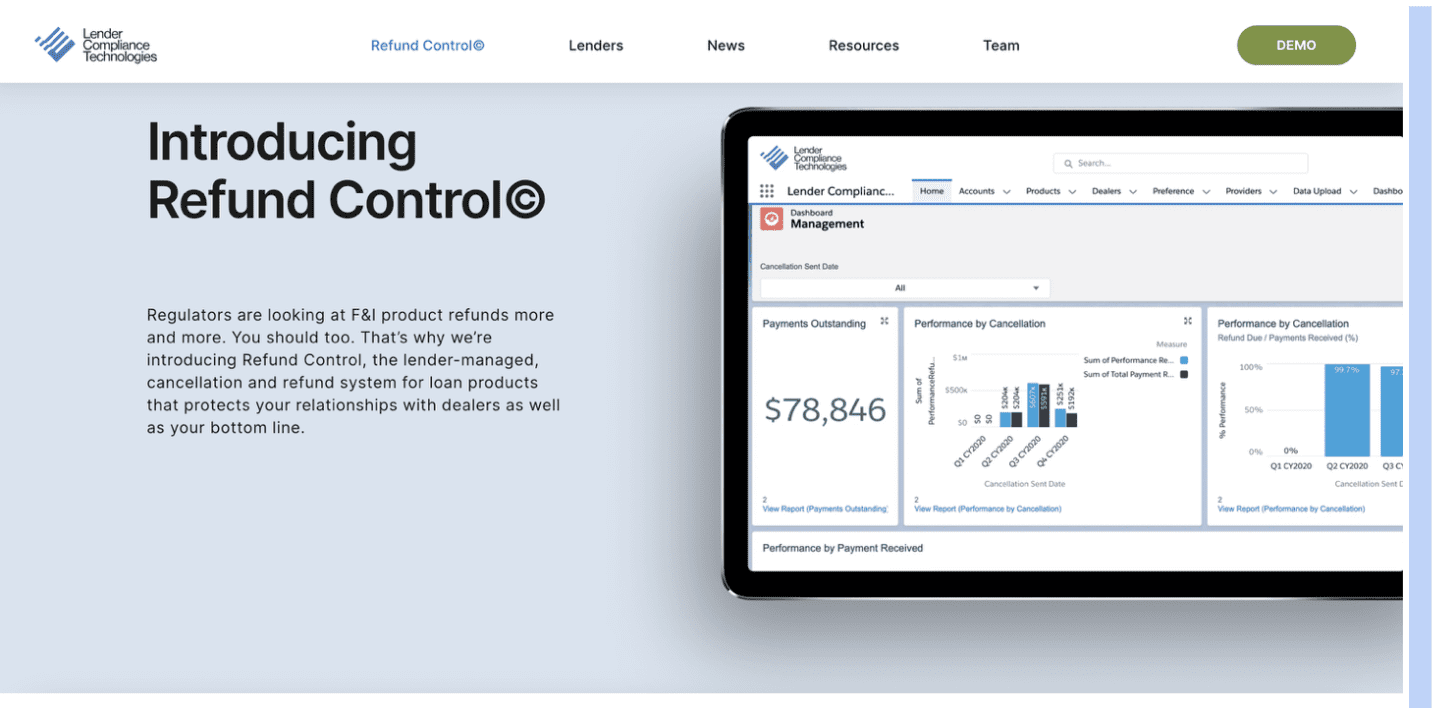 Lender Compliance Technologies offers Refund Control, the lender-managed, cancellation and refund system for loan products that protects your relationships with dealers as well as your bottom line.
