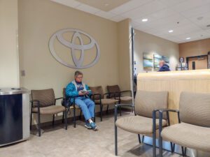 Disinfecting wipes can be used to clean non-porous materials around the dealership including seating in the customer lounge. Make sure to wipe TV remotes, desks, and side tables, and door handles around the store.