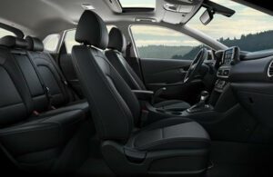 The Hyundai Kona offers an interior design that ranges from subdued to flashy, featuring a brightly colored interior trim and two-tone seats or all black for a more conservative look. Premium features include an 8-inch infotainment system with navigation, Infinity premium audio and a head-up display.