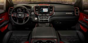 The Ram 1500 Laramie can come equipped with leather seating, Alpine premium audio, heated and ventilated front seats and a 7-inch driver information center with 3D graphics. The vehicle also features a 12-inch infotainment screen system which is the largest in its class.