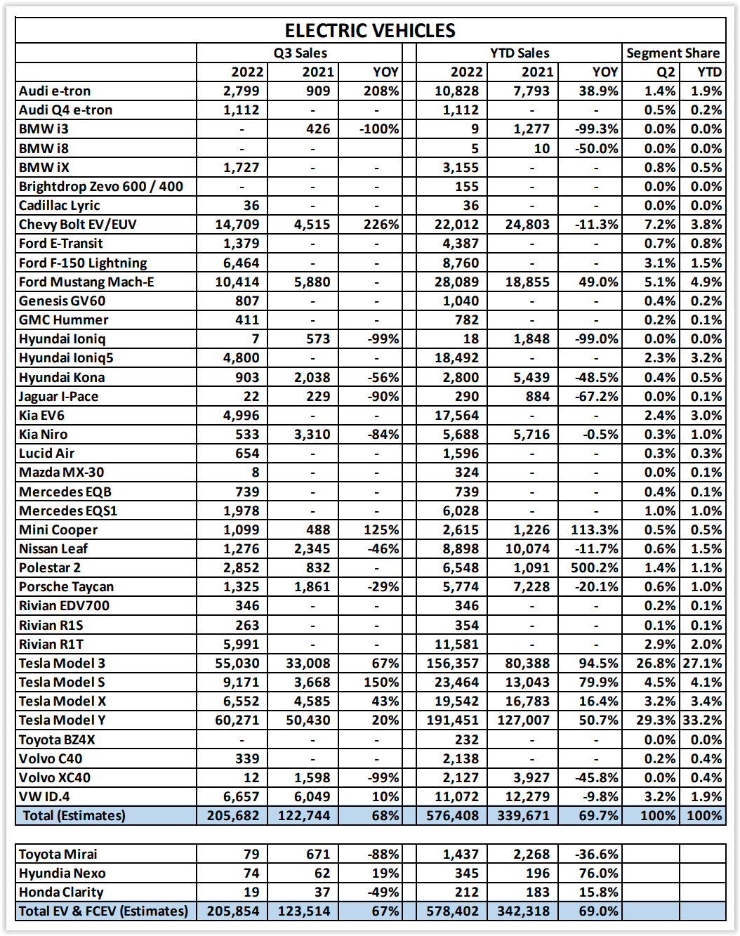 EV sales reach new record, more than 200,000 units sold in Q3 2022