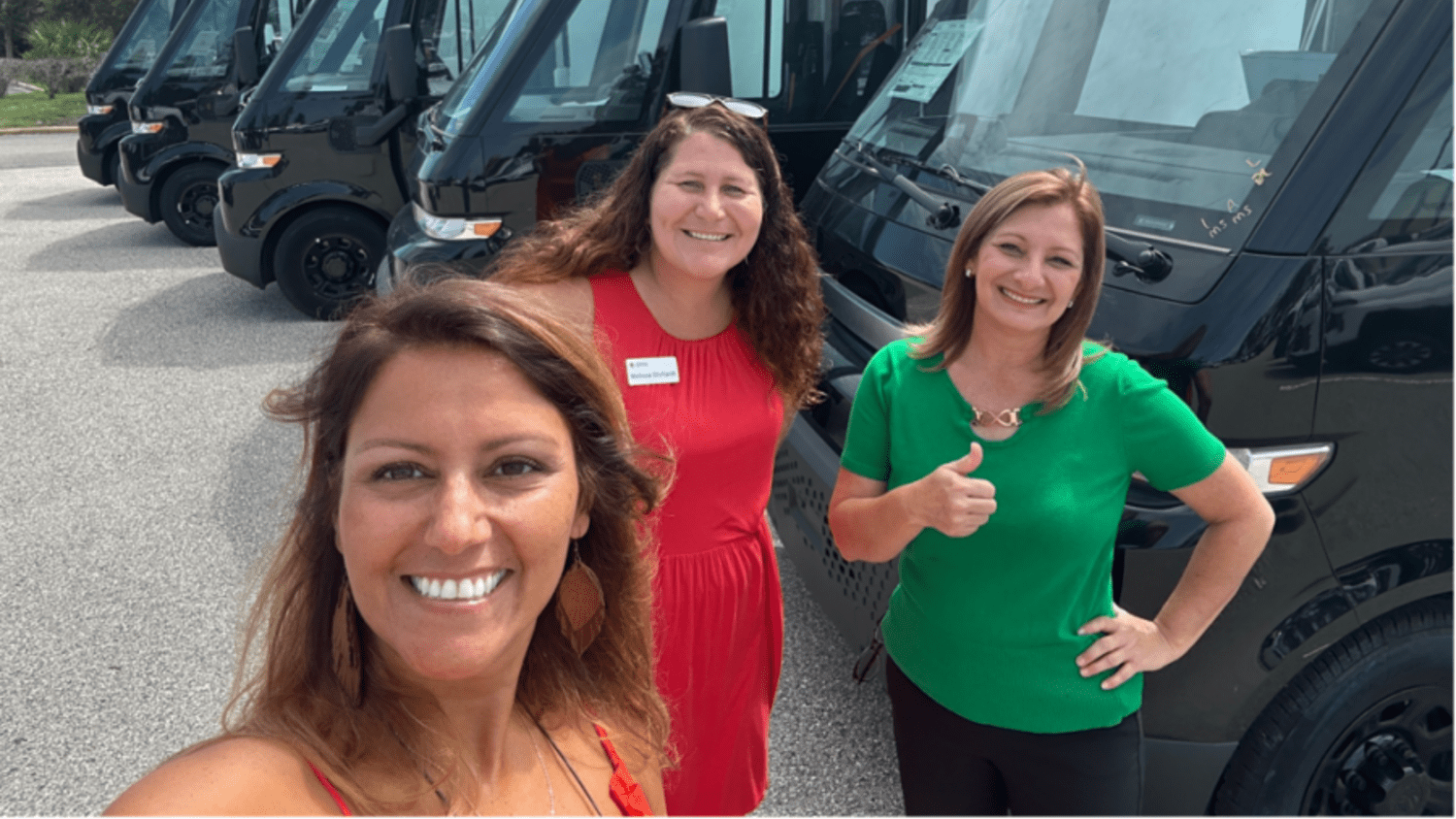 American Red Cross staff with several of the donated BrightDrop vans that will be used help strengthen the resilience of the entire community.