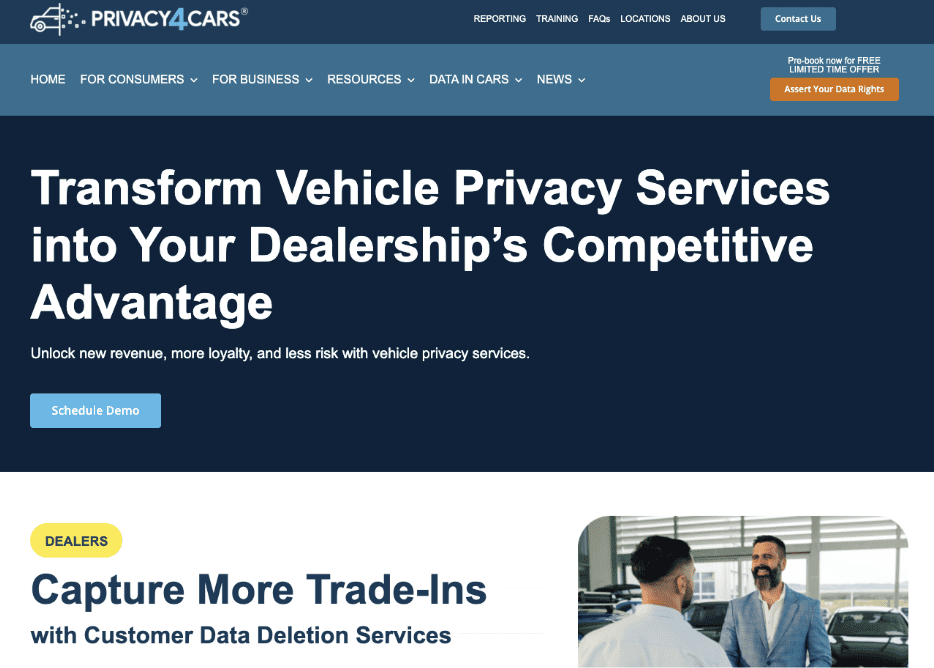 70% of consumers have trade-ins, but dealers only capture 33-38%. Boost your trade-in acquisitions with Privacy4Cars: Offer free data deletion services with a Certificate of Deletion to increase trade-in capture rates.