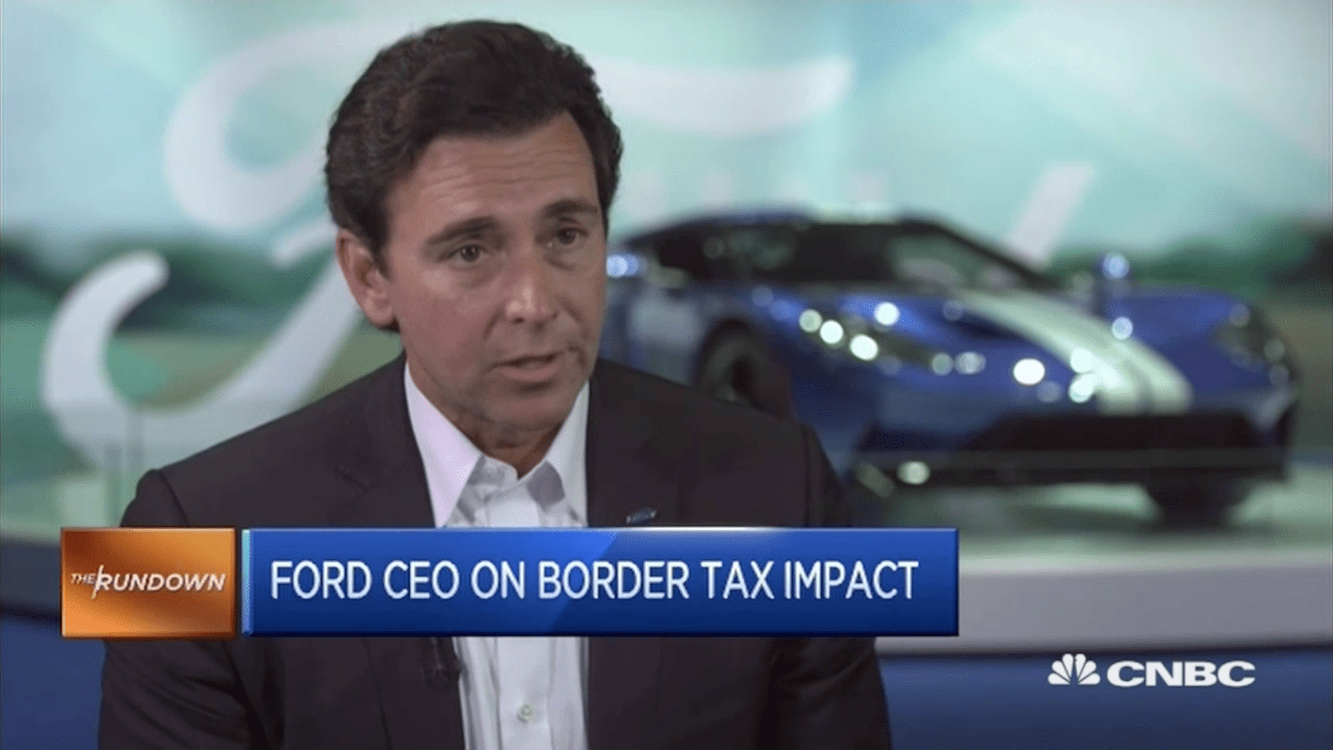 In a recent interview with CNBC’s The Rundown, Mark Fields (CEO of Ford) was asked several auto industry-related questions, including one about the possibility of a border tax. Tune in to see how he responded.