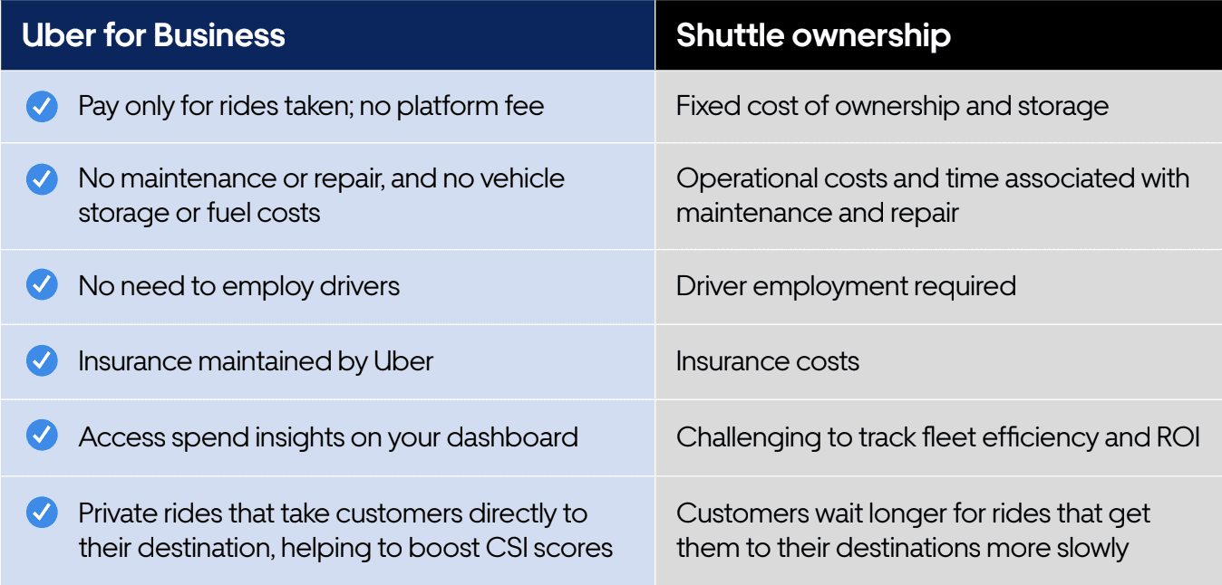 Here’s why we recommend Uber as an alternative or addition to owning a fleet of shuttles: