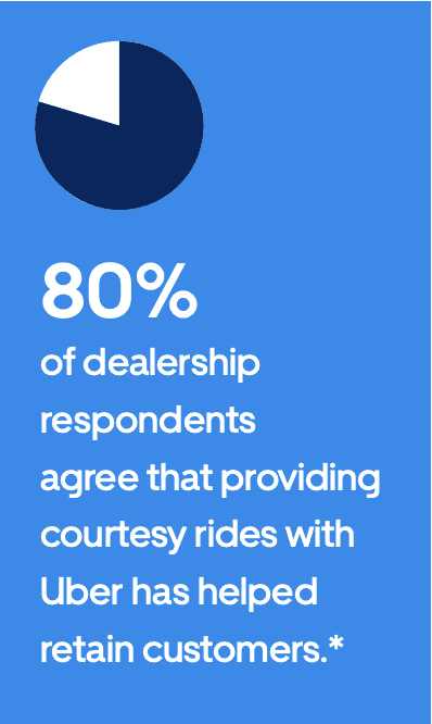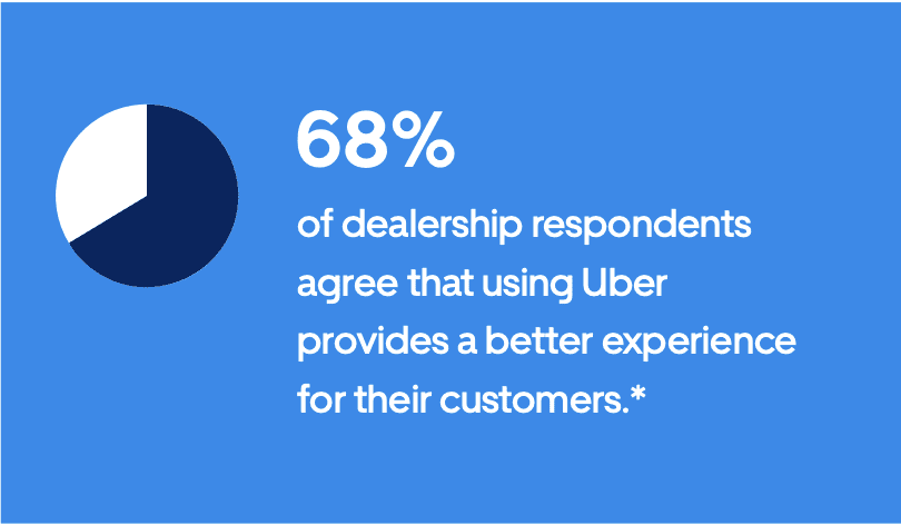 The costs associated with loaner vehicles and shuttles—insurance, maintenance and repairs, and more—can add up quickly. You can reduce these costs by using the Central dashboard to provide courtesy rides for your customers on demand. With no hidden platform fees or surprise expenses, you’ll pay only for the cost of the Uber ride.