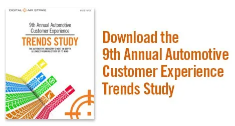 3. Focus on your reputation. Consumers are selecting dealers based solely on online search and reviews at record levels, according to Digital Air Strike’s 9th Annual Automotive Customer Experience Trends Study. Sixty percent of sales consumers, and 67% of service customers, said they chose the dealer based on online searches and reviews. Reviews must encourage people to come back to your dealership.