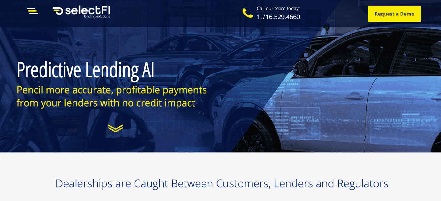 SelectFi is a a predictive lending AI software tool for delaers that allows them to pencil more accurate, profitable payments from their lenders with no credit impact to their consumers.