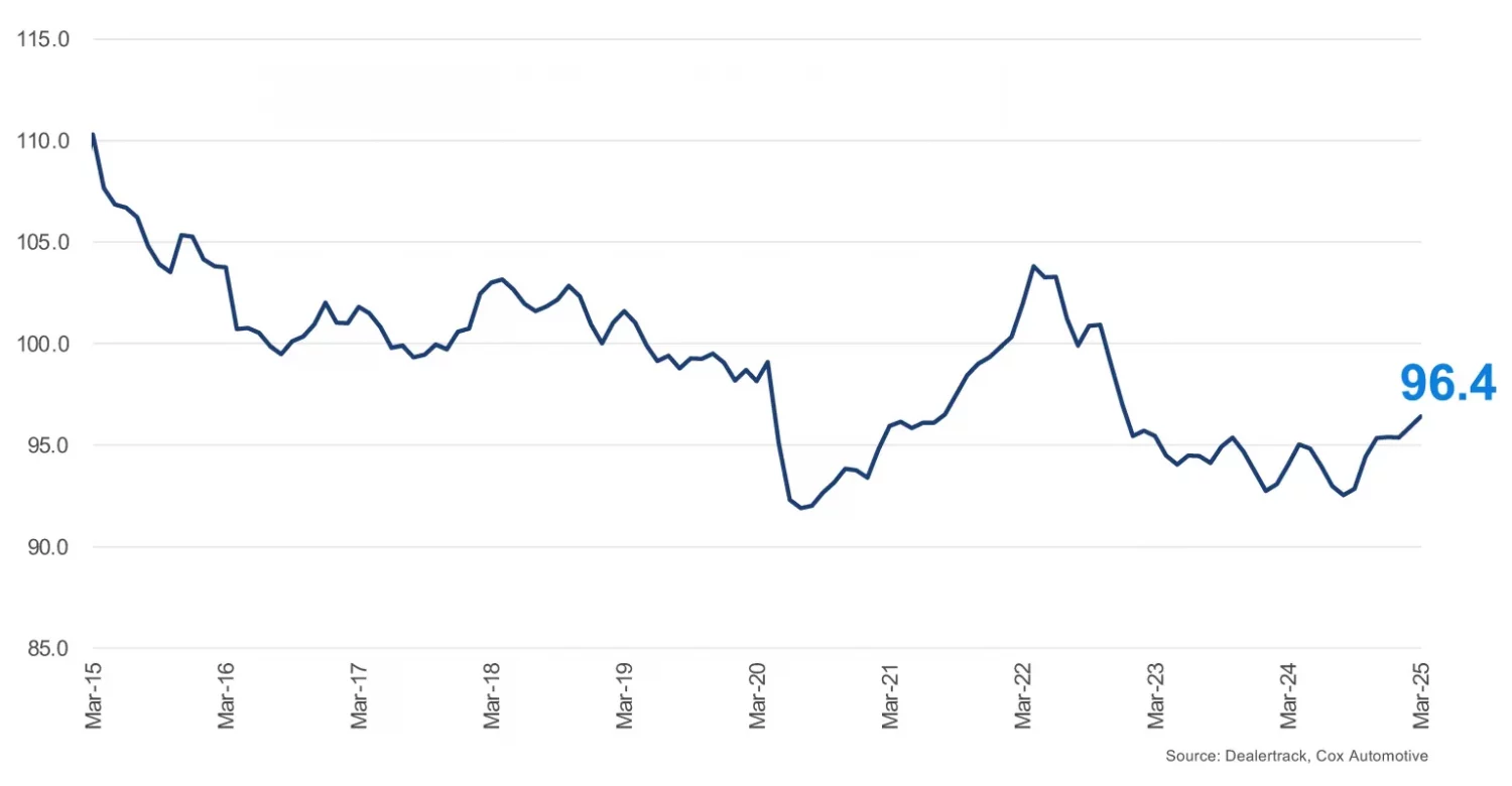 According to the latest data from Cox Automotive‘s Dealertrack Credit Availability Index, auto credit access hit the highest level since December 2022 in March. The All Loans Index reached 96.3, a slight uptick from February’s 95.9 and a 3.1% growth year-over-year.